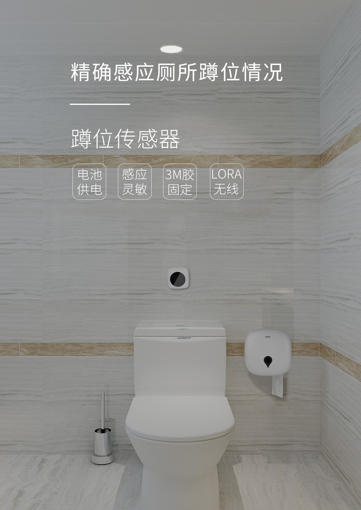 说明:采用红外感应方式对使用蹲位、小便池、马桶等区域是否有人使用(占用)。电池供电,LORA无线,4节5号电池供电,使用周期为6-8个月。