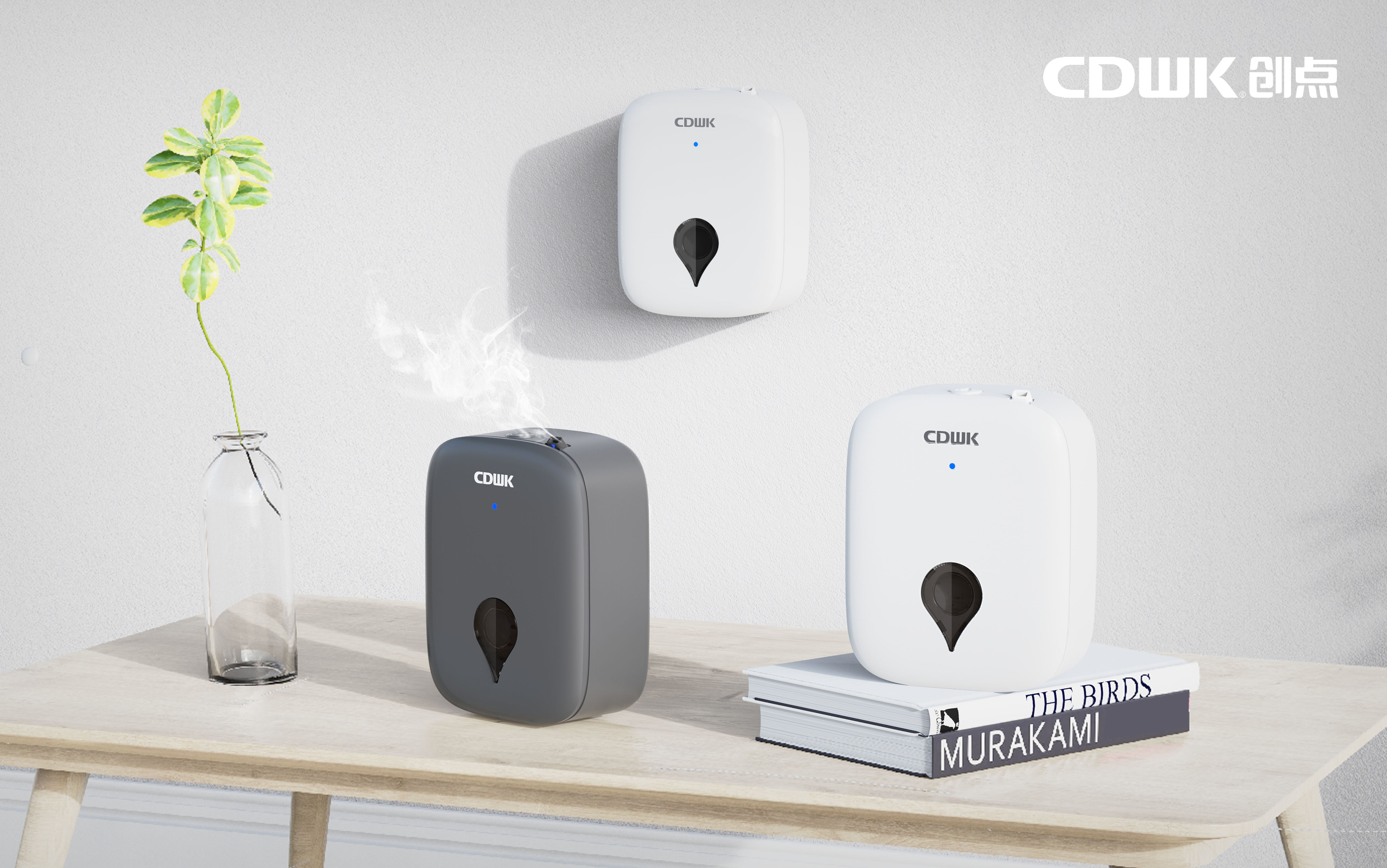 CDWK必威betway官方CD-6086智能香氛机,免打孔安装,蓝牙连接手机控制,可设置喷香工作时间频率等,微孔喷嘴,更加节 能,高频雾化,快速散发精油因子,享受满室芬芳。
