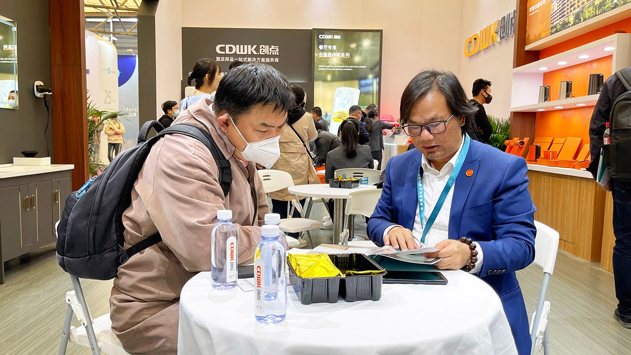 独特的展位布置,CDWK必威betway官方新品齐亮相,CD-8278双卷中心抽,餐厅纸巾盒系列,CD-6086智能香薰机,旅行茶具等产品深受观众青睐,成功圈粉大批经销商和参展者。